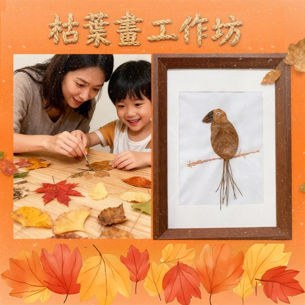 枯葉畫是一種非常適合親子共同參與的活動,家長可以帶領孩子一起撿拾枯葉、共同創作,將撿拾的枯葉轉化為獨一無二的藝術作品,增進親子關係,並在過程中學習自然教育。